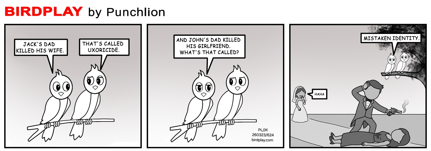 Jack’s dad killed his wife That’s called uxoricide John’s dad killed his girlfriend Mistaken identity 💔🕊️ 23 Mar 2026 #Birdplay #dailycartoon #dailytoon
