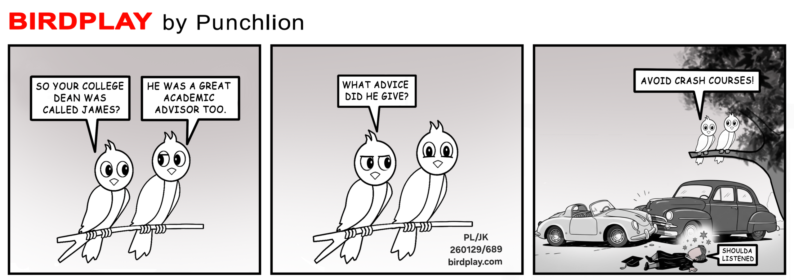 The dean was a great advisor. His advice? Avoid crash courses. 🎓🕊️ 29 Jan 2026 #Birdplay #dailycartoon #dailytoon
